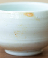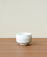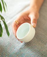 Wei throws each cup carefully by hand. The pieces are air-dried for 3 days until they are bone dry before trimming and then bisque firing. The cup goes into the kiln without any glaze on the outside and emerges with its own unique color, texture and sheen from the atmosphere inside the kiln. Each piece is fired in the soda kiln for 2 days, where temperatures reach up to 1300°C.