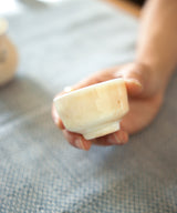 Wei throws each cup carefully by hand. The pieces are air-dried for 3 days until they are bone dry before trimming and then bisque firing. The cup was wood-fired for 3 days in the kiln, with temperatures maintained at 1400 degrees Celsius. It took around 3 additional days for the wood-fired kiln to slowly drop in temperature, so each piece spent a total of 6 days in the kiln.