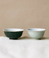 Wang uses his own special formulation of Jingdezhen clay and porcelain for these pieces. Each piece is thrown on a wheel and then shaped by hand. After being bisqued at 800°C, they are treated with natural glazes that Wang has formulated for them, and then reduction-fired at 1300°C.
