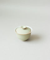 He throws the gaiwans on the potter’s wheel and shapes each gaiwan by hand from his own special formulation of Jingdezhen clay and porcelain clay. After bisque firing at 800°C, he applies his own glazes by hand. The gaiwans are then reduction-fired at 1300°C.