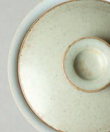 A handmade gaiwan in a special matte grey-green glaze that is the only one of its kind. The inside is a soft, pale blue-grey glaze with small iron spots. Light crackles on the inside glaze will develop through use, and may darken with time.
