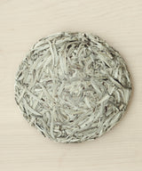 The fluffy silver needles have been pressed into a cake that looks like a shimmering silk cushion. The tea is clean, with a long lasting finish. It is both sweet and sustained, giving us time to marvel at the new experience we are being offered by this traditional form of ingenuity.