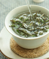 This patient method results in a tea that is as nourishing as it is enjoyable. Its nutritive density and richness is offset by the delicate nature of the young leaves it is made of. The liquor coats the mouth and throat with a complex and lingering sweetness. At first we find notes of fresh soy milk, mountain herbs, and nuts. In subsequent infusions it becomes more floral and subtly fruity; we taste bamboo, plum blossom and crimson rose. All the while there is a mysteriously impactful quality to this tea, perhaps something lent to it by the shadows it saw.