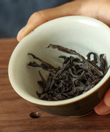 Oolong from this region is called yancha 岩茶, which translates as “cliff or rock oolong.” True cliff yanchas are extremely rare, as they must come from the limited number of tea trees located within the Wuyi Nature Reserve, and must be harvested according to the ancestral rites that are attached to these revered, sloping cliffs. This rarity results in their being two categories within “Cliff Oolongs”: they are either “true cliff 正岩“ or “half cliff 半岩”. “True Cliff” refers to cliff oolongs where the tea trees are located inside the 70 km Reserve area, (and stand amongst the 36 peaks and 99 cliffs). “Half Cliff” refers to cliff oolongs where the tea trees are located just outside this area, but are still situated inside Wuyi City. Tea from nearby villages that are around 20 minutes away from the Reserve, like Xingcun and Caodun, are considered “Half Cliff” as well.