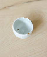 An elegant and beautiful tea cup with spots that resemble shooting stars. Fitting nicely in the hand, it is a perfect size for small sips of tea over conversation with a friend, or as part of your morning ritual.