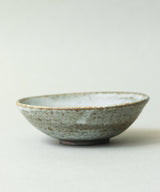 The plate has a beautiful and rich grey-blue glaze, the result of the reaction between the cream glaze and the unique purple clay claybody. It is speckled, a result of the iron rich clay body. It will develop a wonderful patina over time with repeated use.