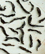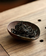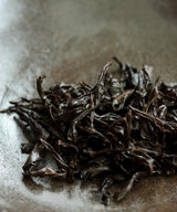 Tasting this tea, it has a very distinct architecture; there is so much mineral structure it's as though it opens up a space of its own in your mouth. This tea is intense and assertive, as Rougui is known to be, and beautifully presents the object-like tasting notes like leather, ash, and oil that this varietal is admired for. Still, it suspends curious and very pretty tropical notes within its mineral architecture – like soursop or custard apple – and it appears dense and soothing on the palate, like heavy cream. This tea causes saliva to gather beneath the tongue; an evocation known to happen in the highest quality teas, as though the essence of the tea is asking to meet your own.