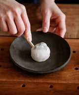 Saki is making a special type of daifuku (one of my favorites!): Mamedaifuku 豆大福, gyuhi mochi with kuromame (black bean), and coarse red bean paste on the inside.