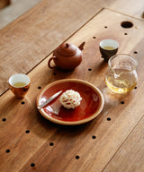 The rare oolong we have chosen is from Fujian. This unusual tea is nicknamed “Dragon Egg” on behalf of the large, orb-like shape of the teacake it is pressed into. We have been waiting to open this curious egg since receiving it in 2021, and now that we are entering a year of the Dragon, we feel the time has come!