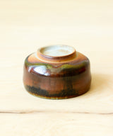 This beautiful tea cup emerged from the kiln with rich brown and black hues on the outside, with "hairline" streaks that are a signature of tenmoku glazes. The inside is extraordinarily unique with silvery metallic hues on the bottom, reminiscent of stars and galaxies.