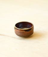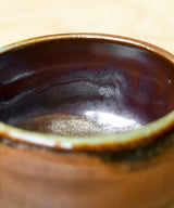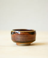 Wei throws each cup carefully by hand. The pieces are air-dried for 3 days until they are bone dry before trimming and then bisque firing. The cup was wood-fired for 3 days in the kiln, with temperatures maintained at 1400°C. It took around 3 additional days for the wood-fired kiln to slowly drop in temperature, so each piece spent a total of 6 days in the kiln. The cup is glazed with tenmoku glaze on the inside and outside.