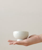 Handmade qingbai porcelain tea cup with subtle ripples on the surface. The lightness and delicacy of the glaze is stunning, evoking qualities of air and water.