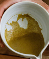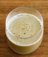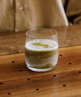 The finely ground tea powder appears very light in colour, but by no means pales in its flavour. Its bright, fresh notes remind us a bit of Kaga Bocha (our beloved Japanese roasted tea), giving this drink a wonderful, floral complexity. The whisked hojicha turns a very compelling caramel colour with milk, and has a very smooth, integrated mouthfee. Its unique, lingering aftertaste floats upwards, into our head, extending our enjoyment of it.